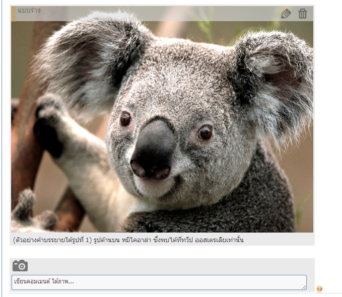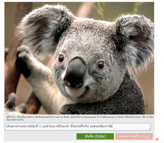 ถึงตรงนี้ ภาพที่แสดงหลังจากอัพโหลด จะเป็นภาพขนาดและอัตราส่วนเดียวกับภาพที่จะแสดงจริงทุกประการ และ เพื่อนสมาชิกสามารถ เขียนคำบรรยายใต้ภาพได้ ที่กล่องข้อความด้านล่างของภาพ ณ เวลานี้ ภาพและข้อความของเพื่อนสมาชิก จะยังไม่ถูกเซฟเข้าระบบ เพียงแต่นำมาแสดงเป็นตัวอย่างเท่านัน จะเซฟเข้าระบบเมื่อ เพื่อนสมาชิก คลิ๊กที่บปุ่มสีเขียว หรือ กด Enter เท่านั้นครับ