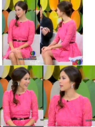เดรสผ้าชีฟองสีชมพูไหล่ข้างเดียวแบบนุ่น วรนุชใส่ค่ะ