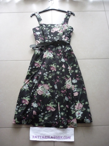 เดรสลายดอกไม้ผูกโบว์ที่เอว เวลาใส่ด้านหลังจะไขว้ๆกันน่าร้ากก มาพร้อมเข็มขัด ซิปซ่อนด้านข้าง