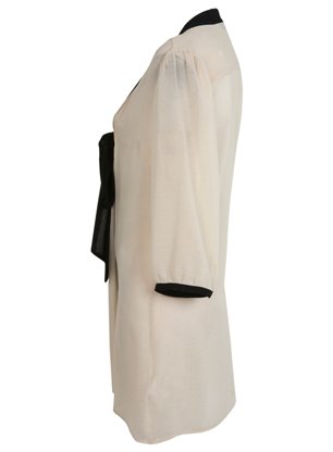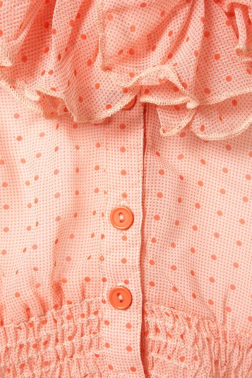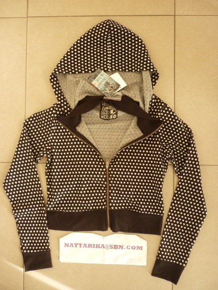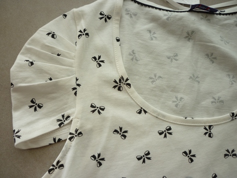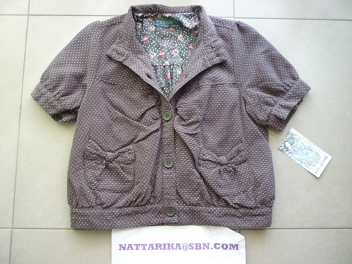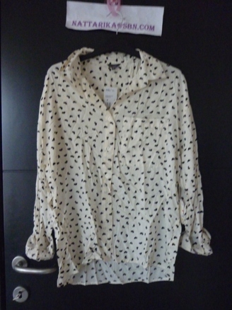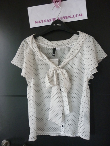 เสื้อลายจุดดำขาว มีโบว์อันใหญ่ๆด้านหน้า แขนระบายน่ารักๆ
