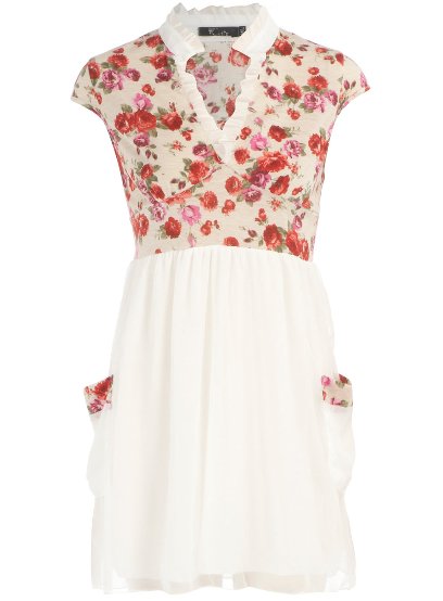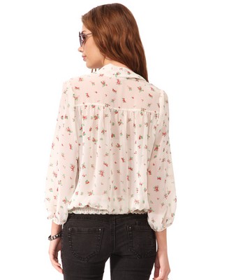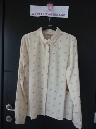 เสื้อลายดอกไม้โทนสีครีมแขนตุ๊กตาน่าร้าก