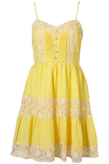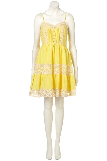 เดรสแขนกุดสีเหลืองน่ารักตรงช่วงเอว ถักลูกไม้สีขาวน่ารักสุดๆค่ะ