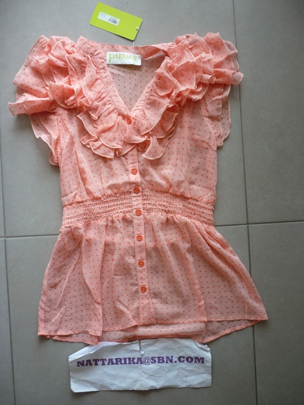 เสื้อสีชมพูหว้านหวานแบบนารักๆ แขนเสื้อเวลาใส่จะป่องๆนิดน่ารักดีค่ะ
