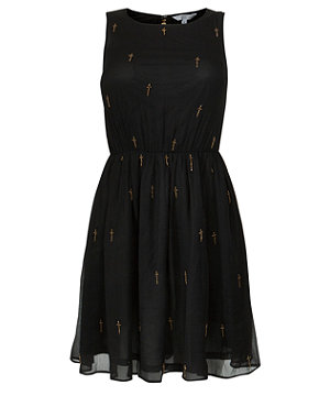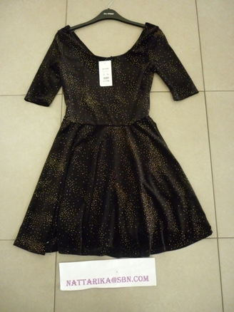 ♥♥– New LooK เดรสผ้ากำมะหยี่สีดำเพชรทั้งตัว สวยหรูน่ารัก Size UK 10