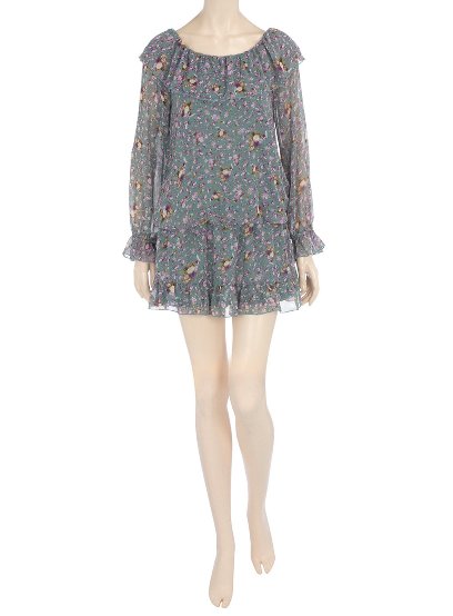 เดรสลายดอกไม้โทนสีฟ้าสวยๆ รอบคอดีเทลลูกปัดสวย