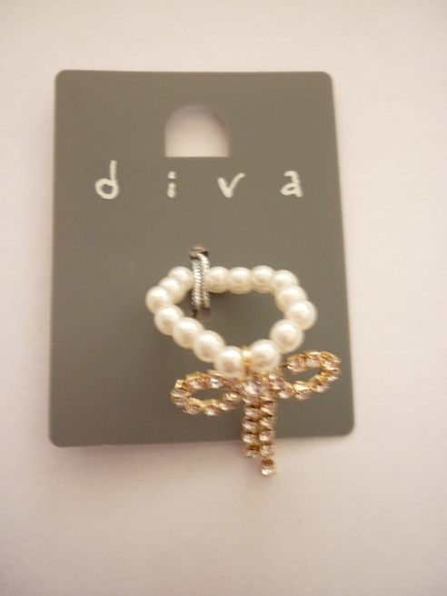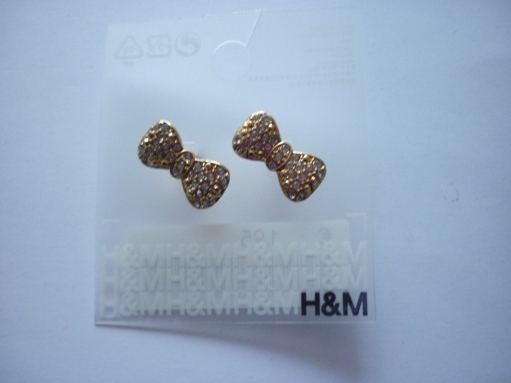 H@M ต่างหูโบว์ทองฝังคริสตัลสีขาวใส