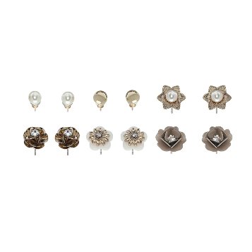 มีต่างหูดเพชรกลม เพชดอกไม้สี่เหลี่ยม และไข่มุกขาว