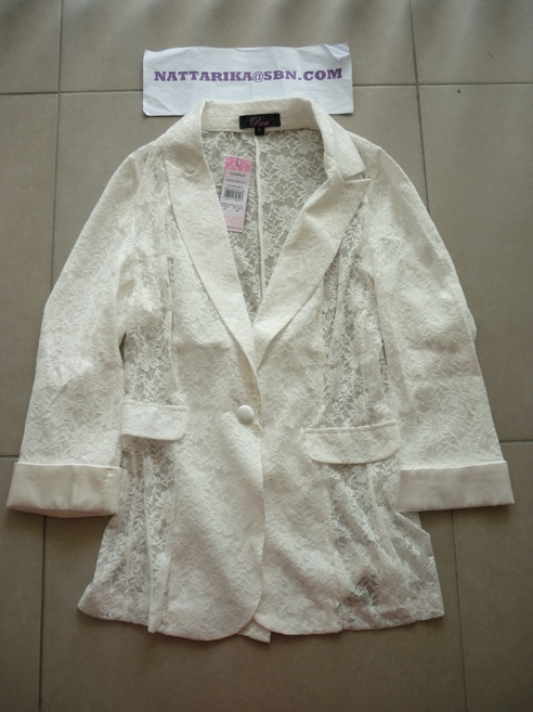 เสื้อฝ้าฝ้ายสีขาวดีไซน์เก๋ช่วงคอ แขนกะกระเป๋นเป็นลูกไม้ถักสีขาว
