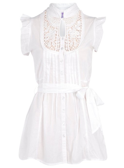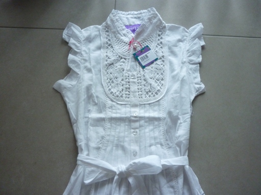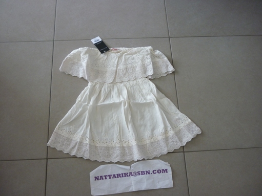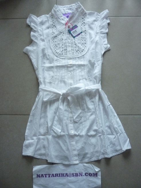 เสือผ้าฝ้ายสีขาวแบบน่ารักมีผูกโบว์ทีเอวด้านหน้ามีลูกไม้สีขาว แขนระบายน่ารักดีนะคะ