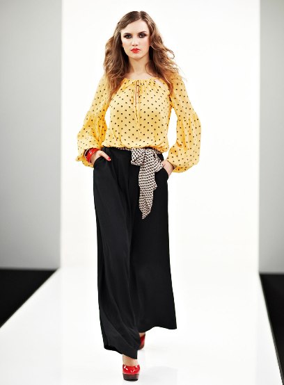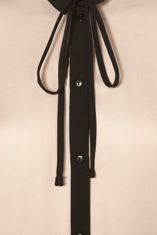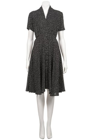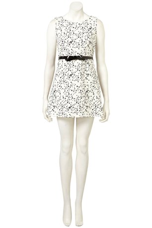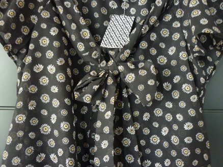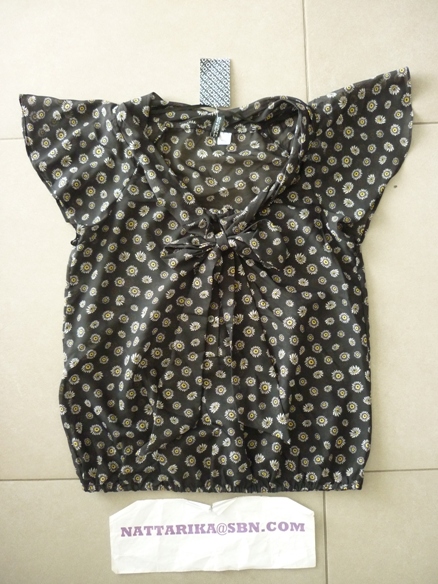 เสื้อผ้าชีฟองลายจุดดำขาว มีโบว์อันใหญ่ด้านหน้า