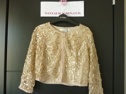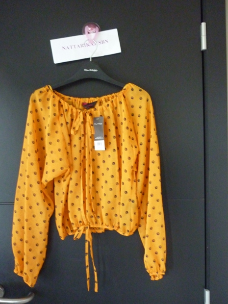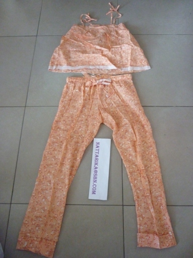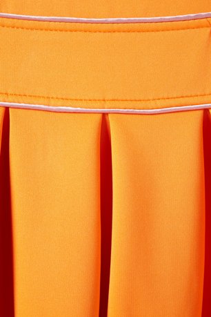 เสื้อสีส้มสดใสตรงหัวไหล่ทำเป็นดอกไม้น่ารักๆ