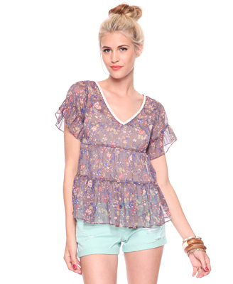 เสื้อผ้าชีฟองลายดอกกุหลาบสวยๆ พร้อมส่ง1ตัว