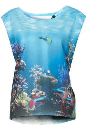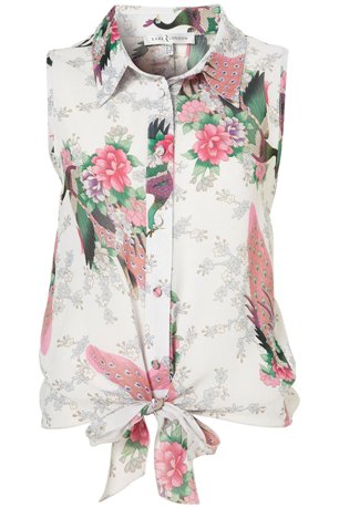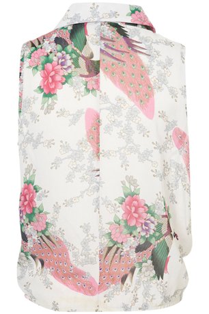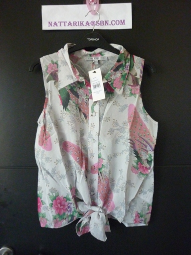 ♥♥–ToPShoP เสื้อแขนกุดปกเชิ๊ตผ้าลายนกยูงสวยมากๆ Size UK 10 ♥♥–