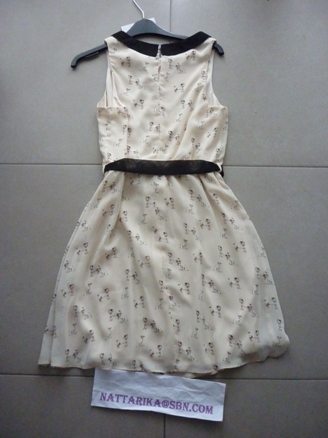 เดรสลายดอกไม้โทนสีน้ำตาลครีมผูกโบว์ด้านหน้าสวยๆ ของจริงสวยน่ารักมากค่ะ(ไม่มีเข็มขัดให้นะคะ)