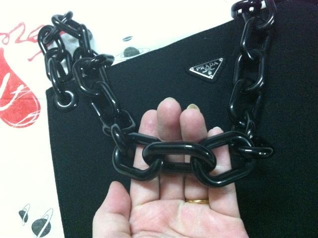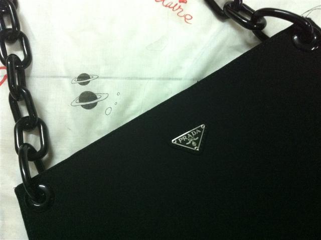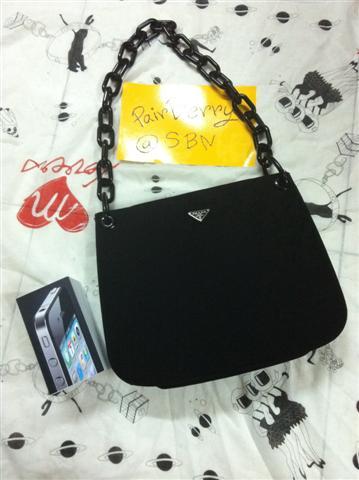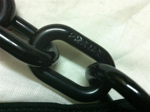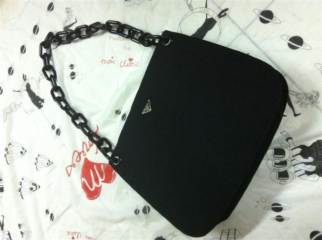 PRADA สายโซ่ใหญ่ สภาพนางฟ้า ไม่มีตำหนิเลย ใหม่มากค่ะ ตัวผ้าเรียบเนียนสวย สีดำสนิท สายโซ่มีรอยขนแมวบ้างเล็กน้อย