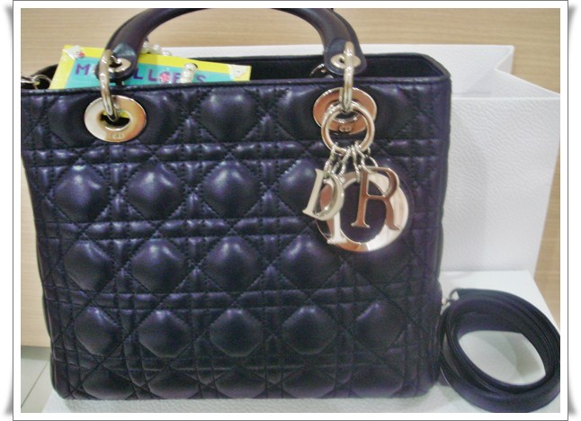 lady dior lambskin 10 นิ้ว สี navy blue ใบนี้ถ้าอยู่ที่มืด ๆ จะออกสีเกือบดำ ถ้าสว่างก้จะออกน้ำเงินค่ะ ทูอินวันกันทีเดียว สภาพดี ใช้งานน้อยมากกกกค่า ทั้งสี่มุมไม่มีตำหนิใด ๆ ทุกช่องเต่งตึงเหมือนใหม่ ซื้อที่เกสรเดือน 4/2010 ราคา 86000 ดูได้ตามใบรับประกันค่า