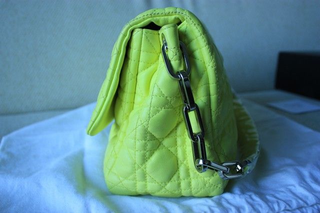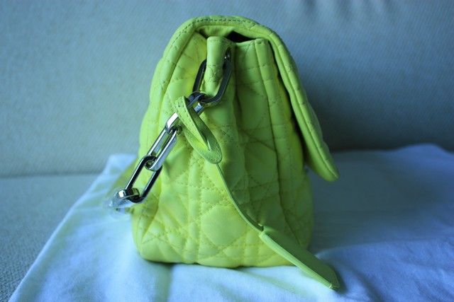 Used Lady Dior 12" กระเป๋ามือสอง สภาพสวยใหม่มากๆ แต่มีรอยหนังถลอกจิ๊ดเดียวค่ะ (รูปที่ 7) แทบมองไม่เห็น เผลอไปโดนทำให้เป็นรอยตามรูปค่ะ ใบนี้เป็นหนังแก้ว ปี 2010 ราคาที่ช็อปไทยแสนกว่าแล้วค่ะ