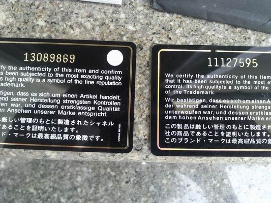 ใบปลอมไม่รู้ว่าเป็นเกรดอะไรนะคะ แต่การ์ด serial number พร้อมค่ะ
