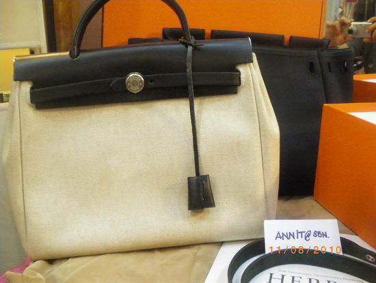 HERMES herbag PM หนังลูกวัว สีดำ ซื้อใบเดียวเหมือนกับได้กระเป๋า 2 ใบเพราะกระเป๋าcanvas มี 2 สี