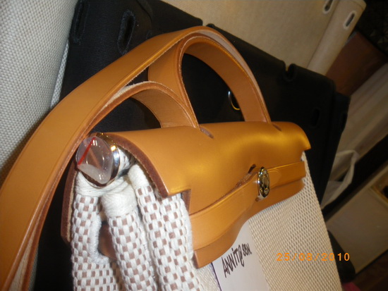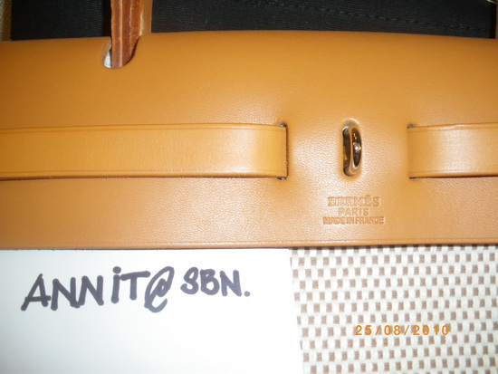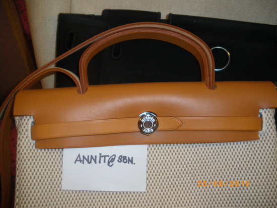 HERMES herbag MM หนังลูกวัว สีน้ำตาล ซื้อใบเดียวเหมือนกับได้กระเป๋า 2 ใบเพราะกระเป๋าcanvas มี 2 ใบ 2 ขนาด