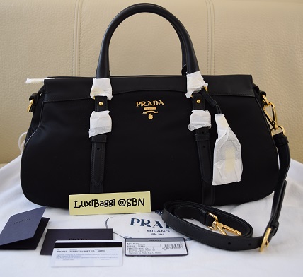 **เปิดจอง** PRADA BL0912 Tessuto + หนัง Soft Calf มีสายสะพายไหล่ สีดำ Nero อะไหล่เงิน สวยไปอีกสไตล์ค่ะ Line ID: LuxiBaggi รับของกลางเดือนมิถุนา