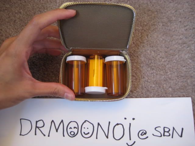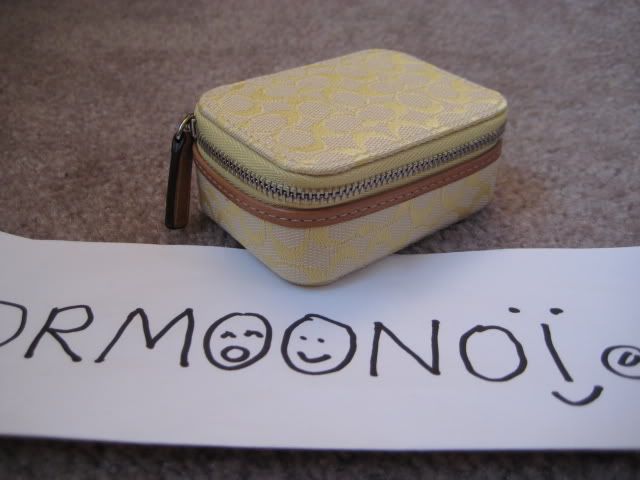 29. ตลับใส่ยาแบบพกพา พร้อมขวดใส่ยาสีชาสามกระปุกด้านใน เป็นลาย mini signature สีเหลือง ตกแต่งด้วยหนังสีแทน มีมาสองอัน นะคะ ราคา 1500 บาท