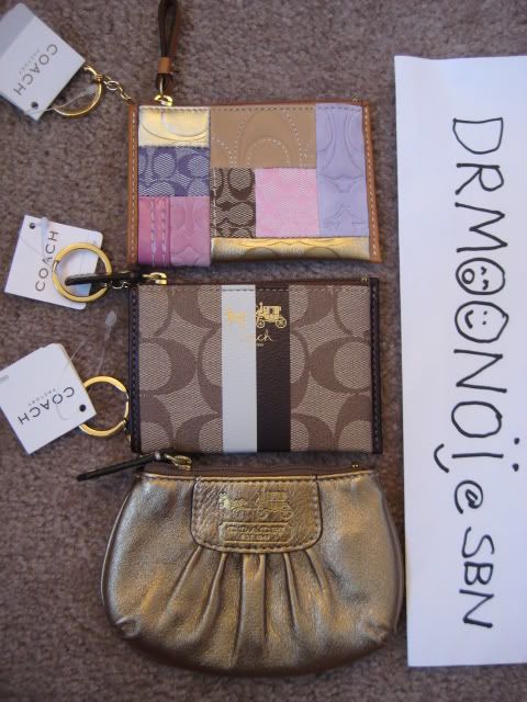 35. กระเป๋าใส่เศษตัง พร้อมห่วงห้อยกุญแจ coin case นะคะ มีมาสามแบบค่ะ เป็นหนังนิ่มๆ สีทอง, patchwork สีโทนชมพู-น้ำตาล และ อันสุดท้ายเป็น PVC canvas กันน้ำได้ สีน้ำตาลเข้มจ้ะ ราคา 1800 บาทเท่ากันทุกอันนะคะ