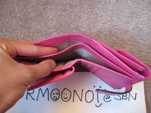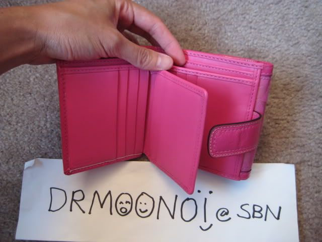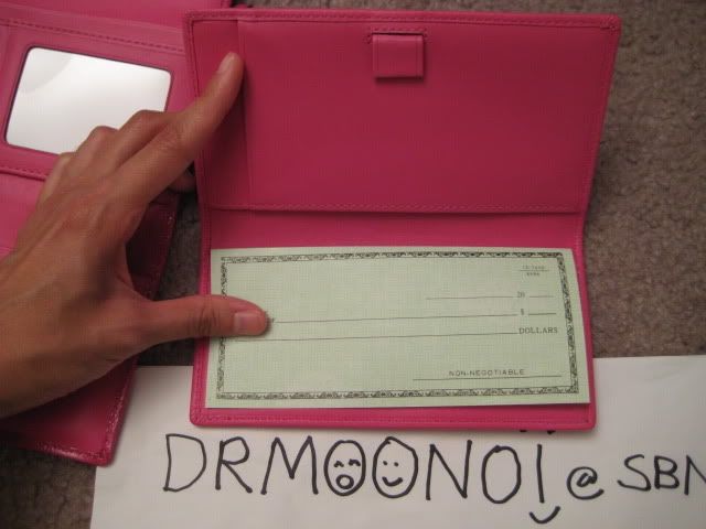- กระเป๋าตังยาวรุ่น Soho แบบมีที่ใส่สมุดเช็คด้านในเป็นหนังสีชมพูสดใส พร้อมช่องซิปใส่เหรียญด้านหลังจ้ะ ราคา 4500 บาทนะคะ