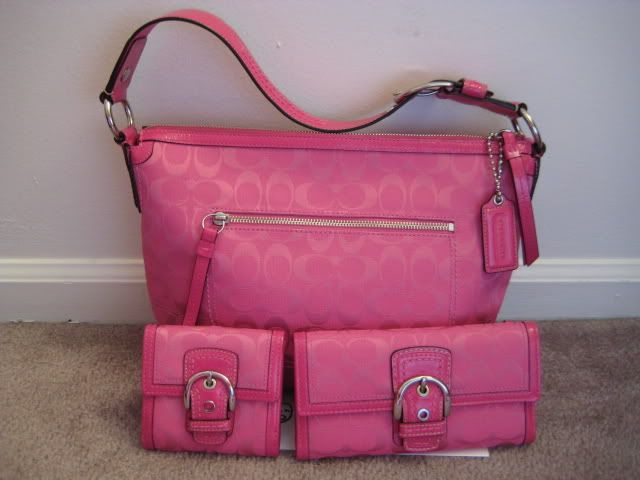 - กระเป๋าตังสั้นรุ่น Soho Signature French purse สีชมพูสดใส เพิ่งได้เพิ่มมาใหม่อีกใบ มีช่องใสใส่ ID card พร้อมช่องยาวใส่แบงค์สองช่อง ช่องใส่การ์ดมีมากจุใจนะคะ