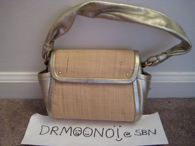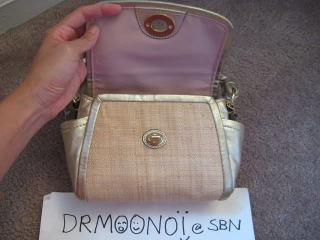46. กระเป๋าสะพายสานใบกะทัดรัด ตกแต่งขอบและหูหิ้วด้วยหนังนิ่มๆ สองโทนสี สีชมพูสดใส และสีออกโทนทองเมทัลลิค ใหญ่พอที่จะใส่กระเป๋าตังใบสั้นได้นะคะ ใช้สะพายไปตลาดไปแบงค์ได้หมดจ้ะ ที่ปิดเป็นปุ่ม turnlock ด้านข้างมีช่องจิ๋วด้วยจ้ะ ราคาเบาๆ ที่ 3500 บาท