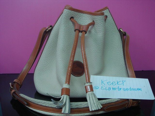 Dooney and Brook ของเมกาค่ะด้านนอกมีรอยดำๆจากการใช้งานบ้างนะคะเพรัวกระเป๋าเป็นสีขาว ยังไมได้ทำความสะอาดค่ะ ยังมีอายุการใช้งานอีกนานเพราะทนมากเลยค่ะ ปลายพู่งอบ้าง ด้านในเป็นหนังกลับมีรอยปากกา และรอยดำเปื่อนทั่วไปนะคะ ช่วยพิจารณาภาพประกอบ ทรงเดียวกับ LV Petit Noe ค่ะ ขนาดก็พอๆกัน สะพายออกมาแล้วก็แนวๆเดียวกันแต่ดูเซอร์กว่าค่ะ ขอขายแค่ 1,000 บาทค่ะ