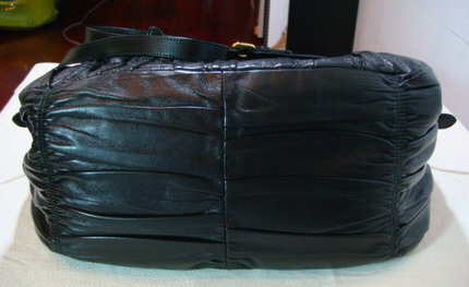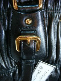 ใบนี้ซื้อมาจากShop Prada ใน NYC ประมาณเดือนตุลาคม ปี 2009 ค่ะ สีฟ้าmetallic สีสวยมากดูได้จากรูป ถ่ายรูปกลางแจ้ง ไม่มีการปรับแสงใดๆทั้งสิ้น สภาพมีตำหนิภายนอก 1 แห่ง ภายใน 1 แห่ง และถลอกตามมุมกระเป๋า (ดูได้จากรูปเลยค่ะ) ขนาด 15"x14"x 4" อุปกรณ์มี ถุงผ้าPrada การ์ดPrada สายสะพาย และถุงกระดาษPrada