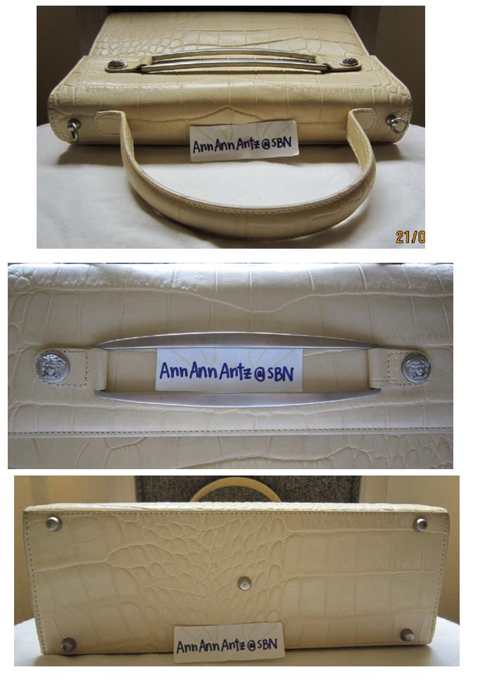 กระเป๋าเป็นสีขาวครีมค่ะปั๊มลายนูน สวยไฮโซ ใช้ได้แบบหิ้ว สะพายข้าง และcross body