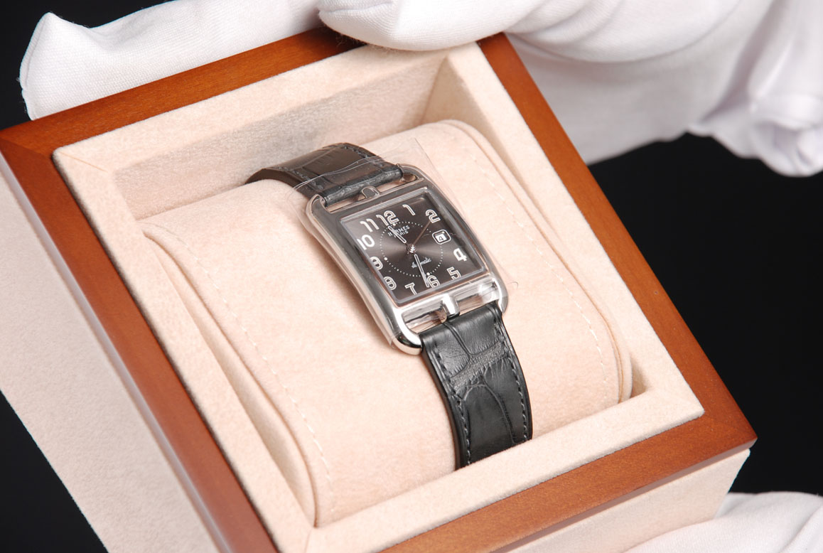 นาฬิกา Hermes สวน หรู ดูดี ด้วย สาย alligator (จรเข้ เลี้ยง นะ ไม่ใช่ จรเข้ตามทุ่ง ขอ บอก)สีดำ เลิศมาก ใบ การันตรี พร้อม หน้าปัด ยังไม่กล้า แกะ กล่อง มี ฝาเปิด จากข้างหน้า ไม่ทำให้ กล่อง เสี ยทรง ขาย 85,000 บาท