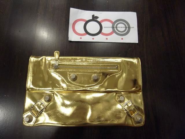 Balenciaga Clutch สีทอง สภาพดีไม่มีตำหนิค่ะ ของปี 2009 เปนรุ่นหนังแก้ว ไ่ม่ทำออกมาแล้วนะคะ