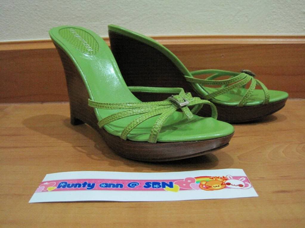 4. SERGIO ROSSI สีเขียว เป็นแบบสวม ส้นตัน สูง 4" size 35 1/2"