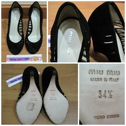 1. MIU MIU สีดำเป็นหนังกลับ เป็นแบบส้นตัน สูง 4" size 34 1/2