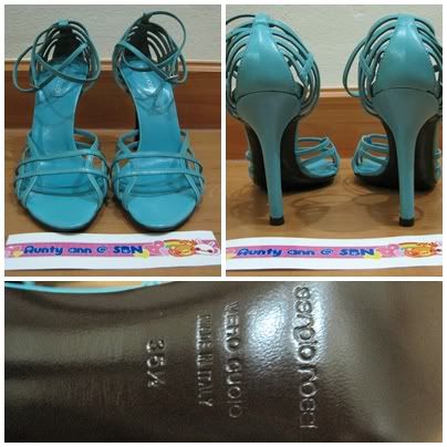 3. SERGIO ROSSI สีฟ้า คล้องข้อเท้า สูง 4" size 35 1/2"