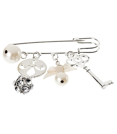 ♥ ♥ H@M เข็มกลัดเงินห้อยกุญแจ ลูกตุ้มคริสตัล โบชมพูและไข่มุก