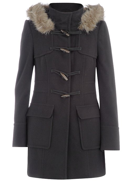 Dorothy Perkins Black fur trim coat size uk 12