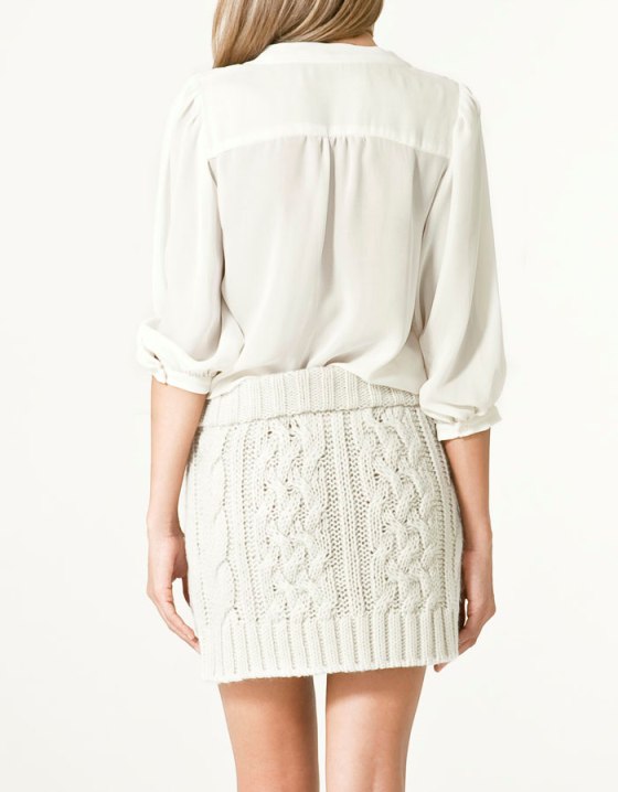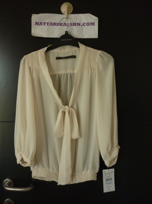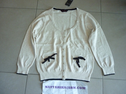 เสื้อไหมพรมแบบโปร่งสีครีม มีโบว์ด้านหน้า ทางเข้ารูป