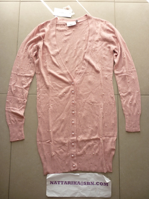 เสื้อคาดิแก้นตัวยาวสีดำผ้าเนื้อดีมากๆ ปักไข่มุกสีขาวทั้งตัว กระดุมก็ไข่มุกสีขาวด้วย