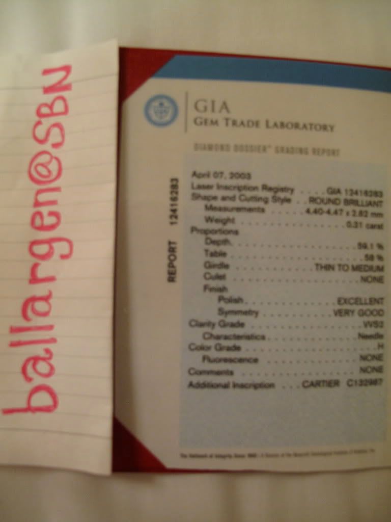 แหวนเพชร Catier .31 ct. H-VVS2 size 50 มีใบ cert. เพชร และใบ guarantee จาก shop cattier ครับ
