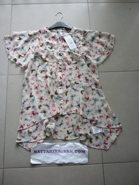 เสื้อลายผีเสื้อระบายด้านหน้าน่ารักๆ แบบเก๋เวลาใส่ด้านหลังจะยาวกว่าด้านหน้านิดนึง