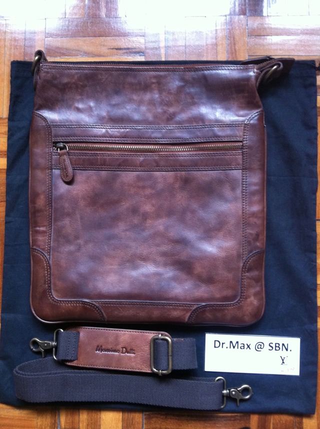 ใบแรกเป็นกระเป๋าสะพายข้างสีน้ำตาลคับ หนังแท้ทั้งใบครับ ด้านในบุผ้าสีน้ำตาล