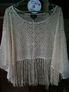 Topshop cream crochet fringed poncho top size s/ M/L =2800
