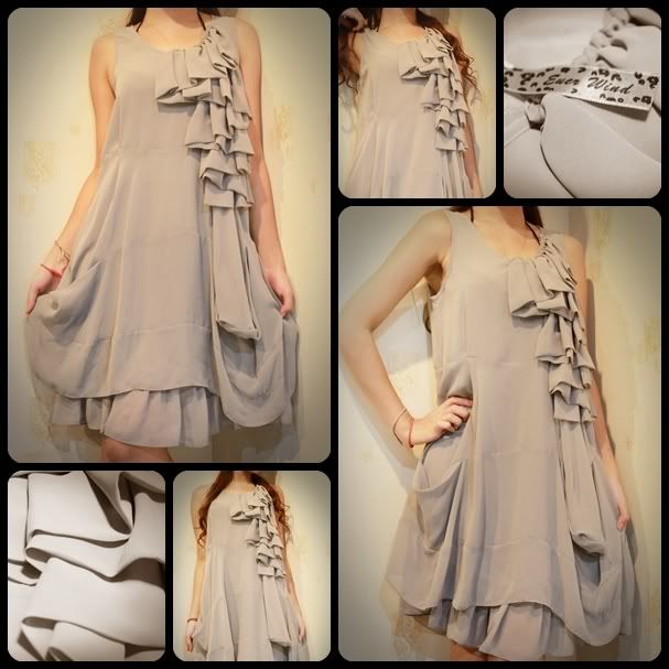 เดรสเทาอ่อน จาก EVER WIND ผ้าชีฟองเกรด A