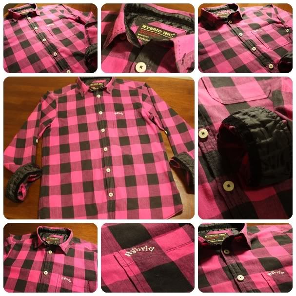 เสื้อเชิ้ต HYBRID แขนยาว SIZE M ลายตารางสีชมพูดตัดดำ ฮิตสุดๆ
