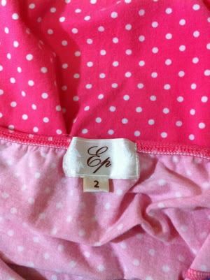 เสื้อคล้องคอ ep size2 สีชมพูน่ารักมากลายจุดขาว ผ้ายืดค่ะและหนาค่ะไม่บาง ช่วงหลังจะมียางยืด ยืดได้ถึง 19 นิ้วค่ะ ใส่ไป1ครั้งค่ะ สภาพใหม่ไม่มีตำหนิค่ะ ขาย
