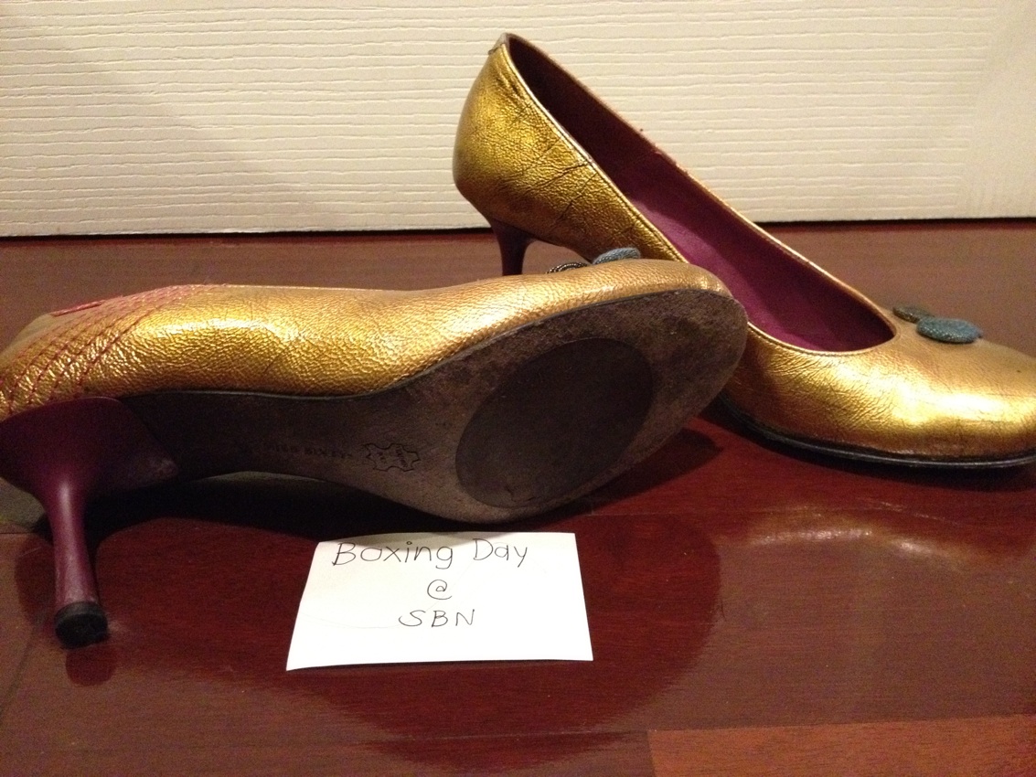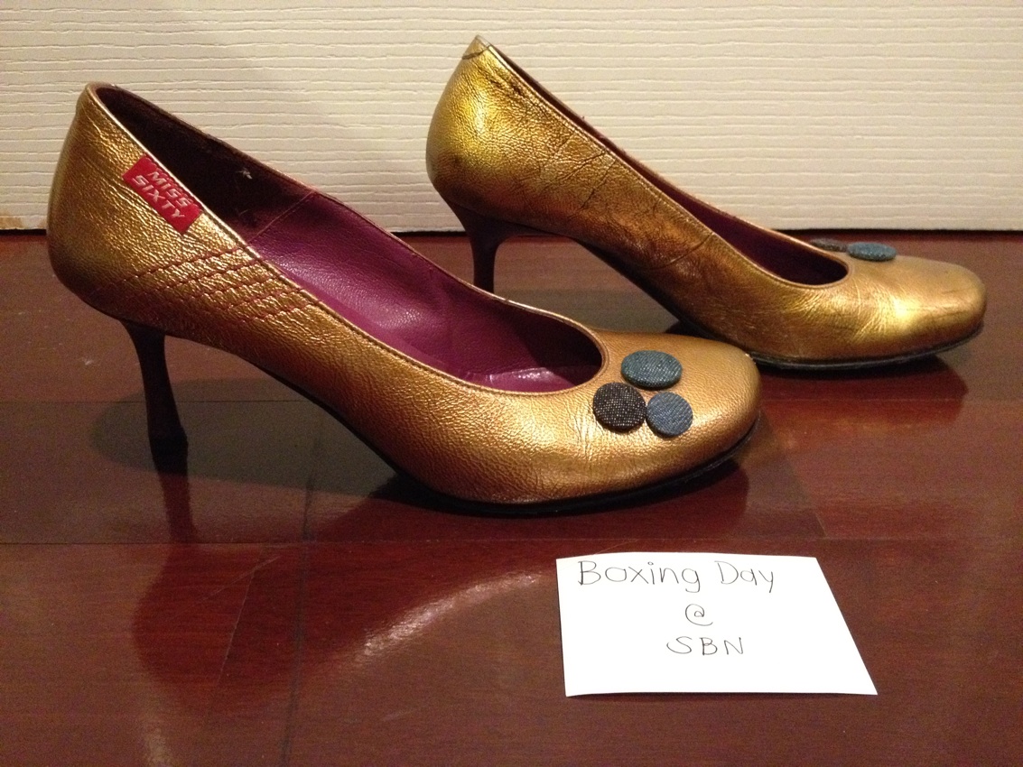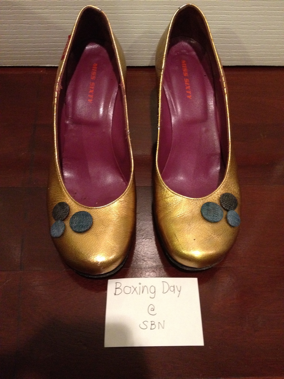 USED: Miss Sixty Shoes Size 38 สีทองสวยงาม ออกด้านนิดๆค่ะ สภาพดี 80% ซื้อมา7,000กว่าบาท ขอเสนอราคาที่ 3,000 บาท